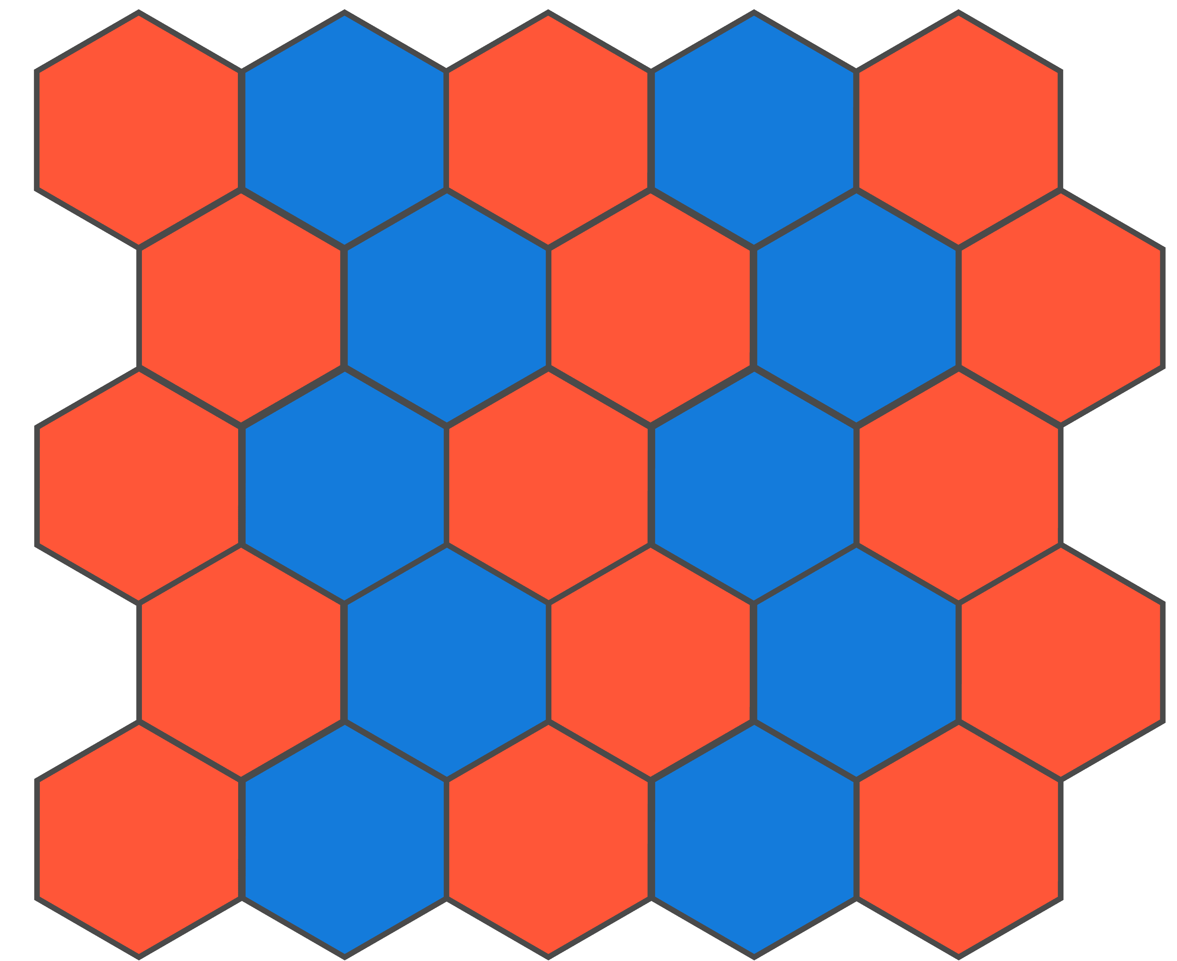 Voici la première difficulté des grilles hexagonales. Selon l'orientation de l'hexagone, une cellule sur deux sera décalée.